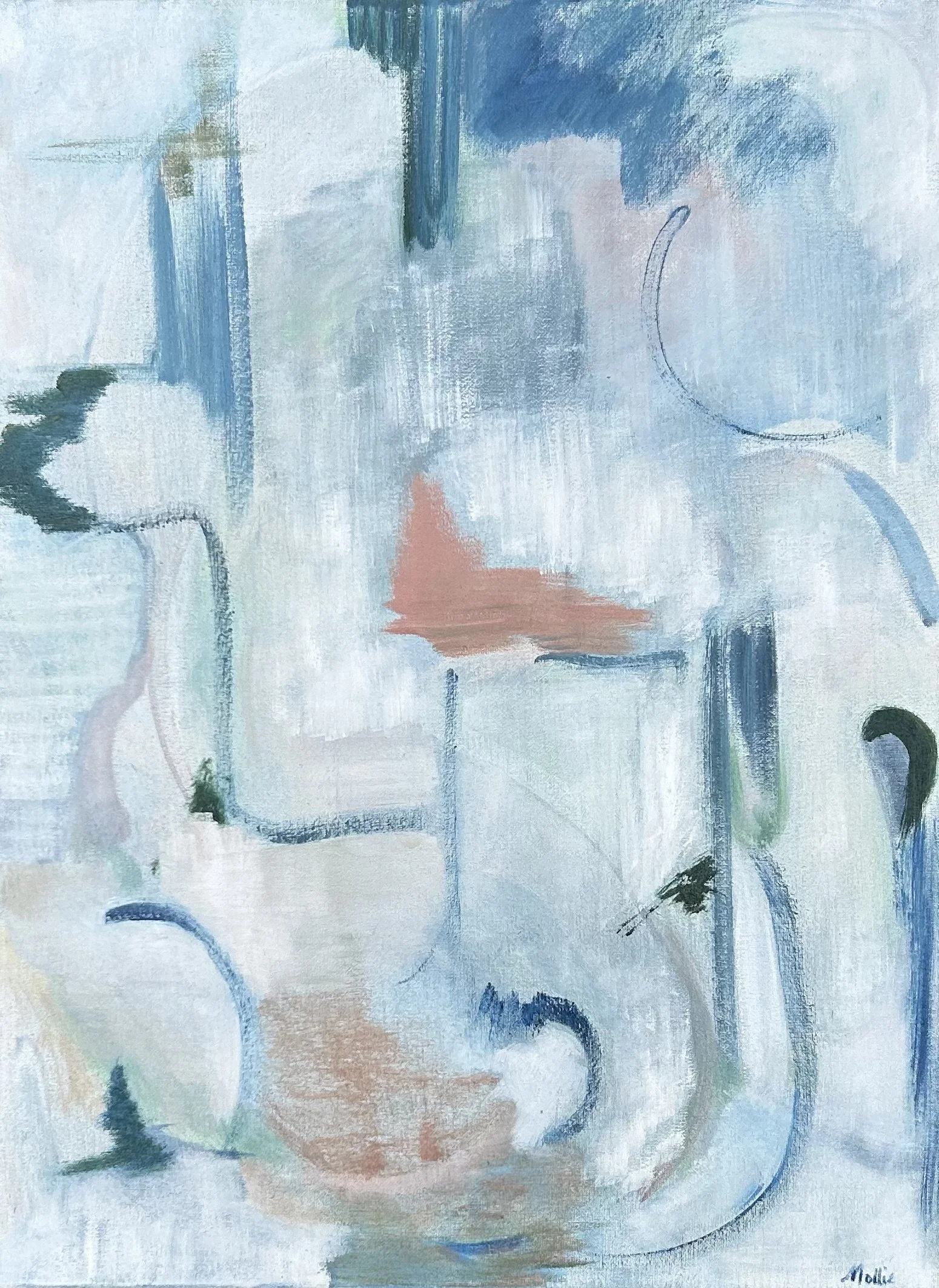 Mollie Gregory is a primarily abstract artist based in Mississippi. With music as her main muse, her works have alot of movement, are distinctly modern, and harmonize well in a variety of interiors. Contemplative in nature, her canvas pieces fuse shapes and layers, often paying homage to a lyric with particular depth or meaning. Her paper pieces can be much more minimal, celebrating the strength of balance.